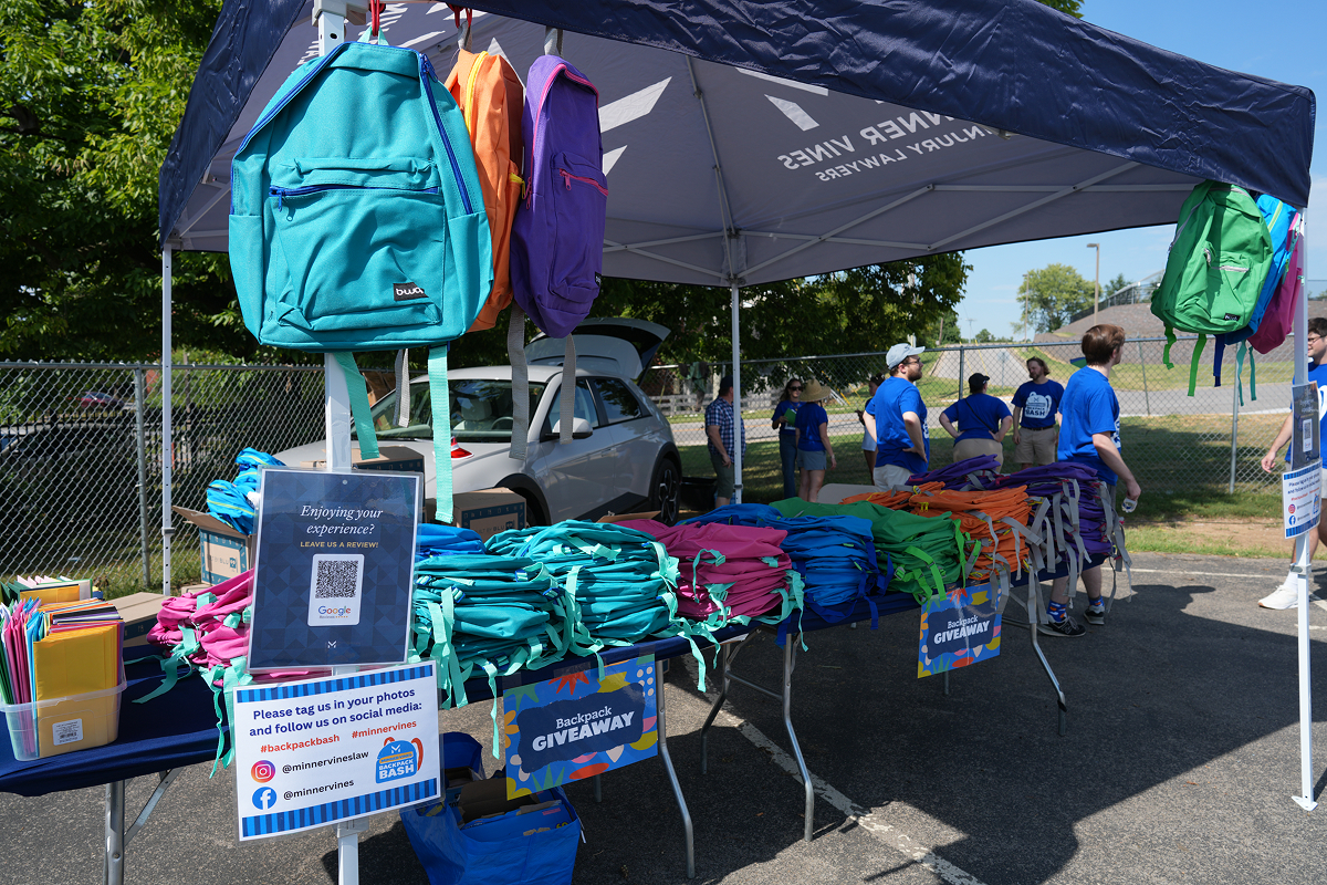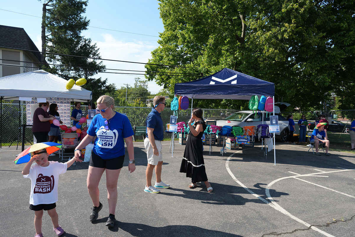 In 2025, we hosted the second annual Minner Vines Backpack Bash at Tate’s Creek Elementary in Lexington, Kentucky. We handed out 300 backpacks packed with school supplies, played games, shared snacks, and served up smiles with Kona Ice and ice cream! We’re grateful to give back to the community and proud to host this free event that means so much to us and the school families.